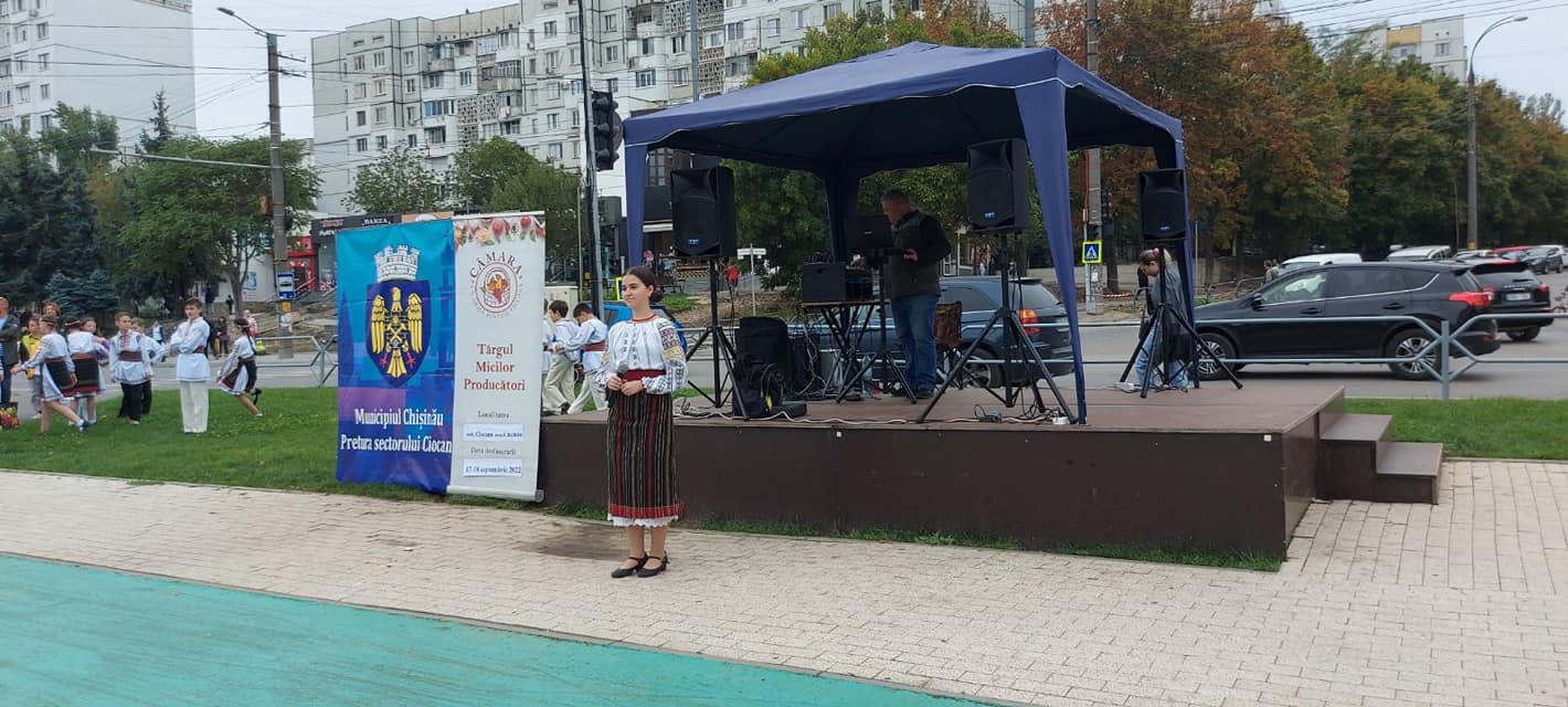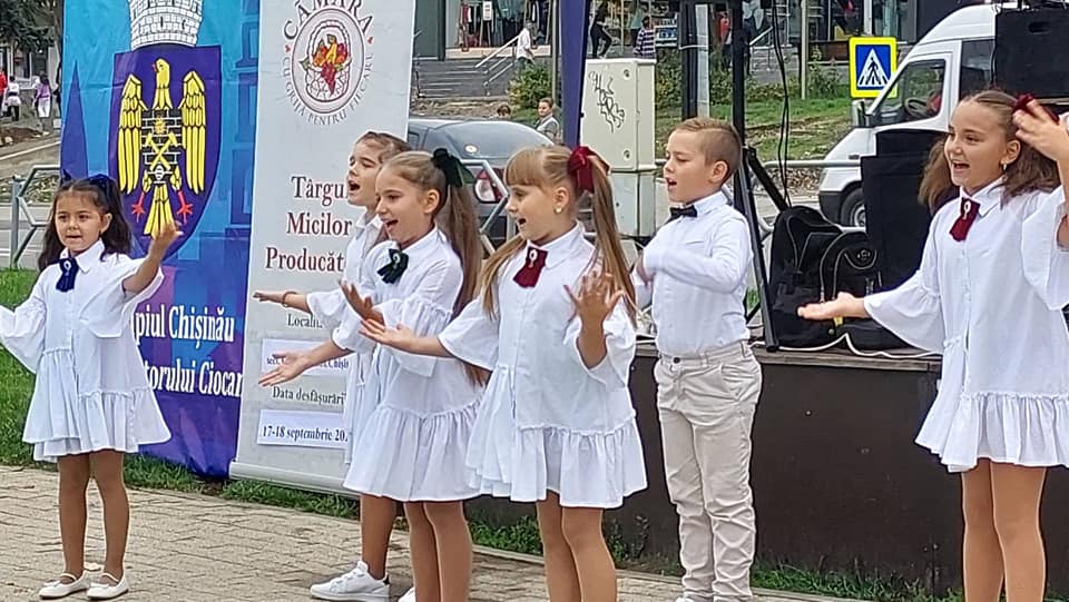 Copiii din cadrul Centrului de creație a copiilor ,,Ghiocel” în cadrul Târgului micilor producători ,,CĂMARA” în colaborare cu Pretura sectorului Ciocana.